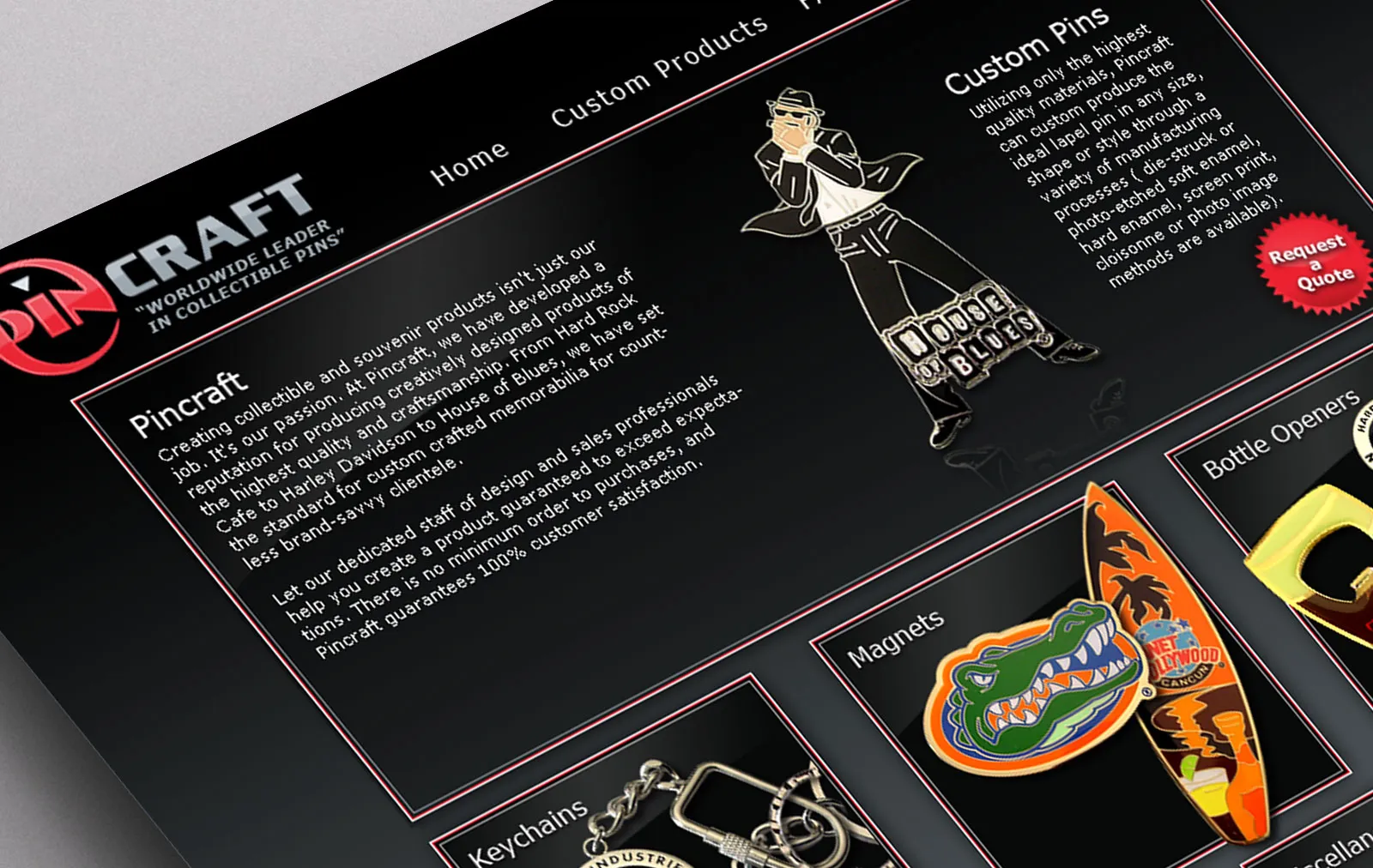 I connected with Pincraft during my time at Hard Rock International, where they supply custom pins. I initially developed their website as an HTML/Flash hybrid back when Flash was the industry standard.