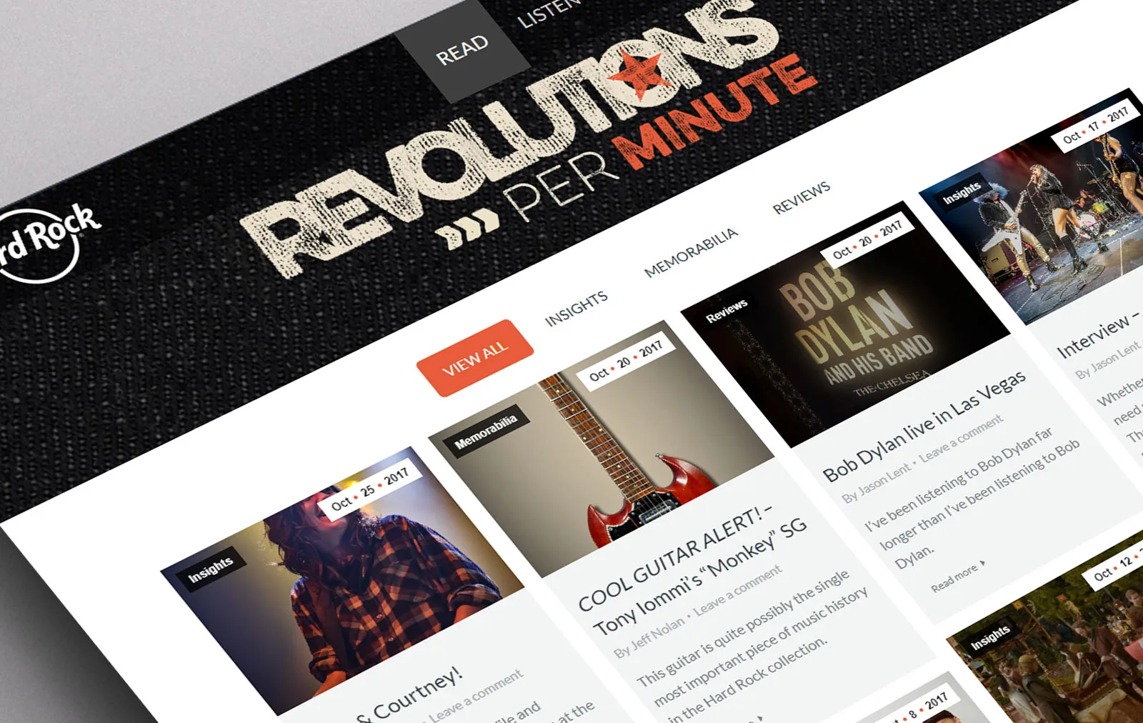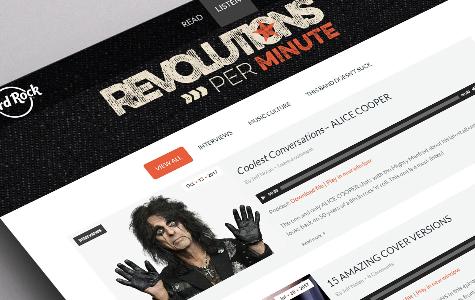 A Podcast/Blog style community built to engage with Hard Rock fans. At first the focus was on creating a podcast site, but soon realized blog posts were easier and faster to produce. So we turned more of our focus on blog posting with podcast posting less often.